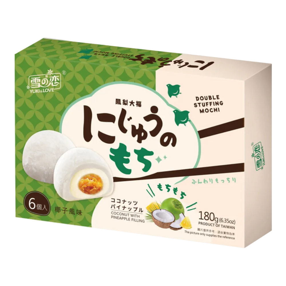 Aukščiausios kokybės Taivano močiai su dvigubu įdaru iš sultingų tikrų ananasų ir kreminio kokoso, įdėtu į minkštą, itin kramtomą lipnų ryžių pyragaitį, kad kiekviename kąsnyje būtų nenugalimas tropinis sprogimas. Šiame gaiviame skanėste puikiai dera saldus ananasų skonis ir turtingas, švelnus kokosų kremas, todėl „Yuki & Love“ yra geriausias Taivano mochi prekės ženklas, pasižymintis šoklia tekstūra ir autentišku salos skoniu. Tai idealus pasirinkimas vakarėliams, siurprizams pietų dėžutėse, desertų lėkštėse ar bet kada iš karto pasimėgauti tropiniais malonumais. Griebkite šią 180 g pakuotę ir su kiekvienu kramtomu kąsneliu perkelkite savo skonio receptorius į saulėtą paplūdimį.
