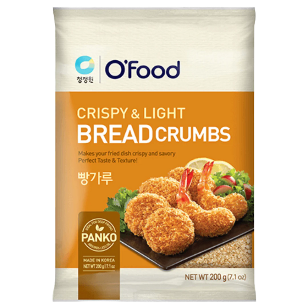 „O'FOOD Panko“ duonos trupiniai - 200 g maišelis lengvų, dribsnių pavidalo japoniškų duonos trupinių, pagamintų iš baltos duonos be plutos. Šie panko dribsniai sugeria mažiau aliejaus, todėl yra lengvesni, puikiai tinka viskam - nuo tonkatsu ir tempura iki salotų ir troškinių. Pietų Korėjoje iš kvietinių miltų, mielių, jūros dumblių miltelių ir palmių aliejaus pagaminta vegetariška danga suteikia malonią tekstūrą, bet neužgožia skonio. Vos 2,6 g riebalų ir 13 g baltymų 100 g - tai sveikesnė alternatyva tradiciniams džiūvėsėliams. Lengvai naudojamas ir universalus panko padeda pasiekti auksinių, traškių rezultatų orkaitėje, keptuvėje ar orkaitėje - visur, kur tik trokštate tobulo traškumo.