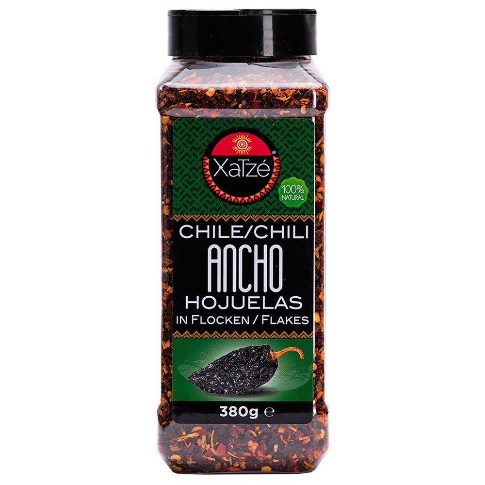 Chile Ancho Hojuelas (nesmulkinti džiovinti pipirai) XATZE, 380 g yra užsakytas ir bus išsiųstas, kai tik bus sandėlyje.