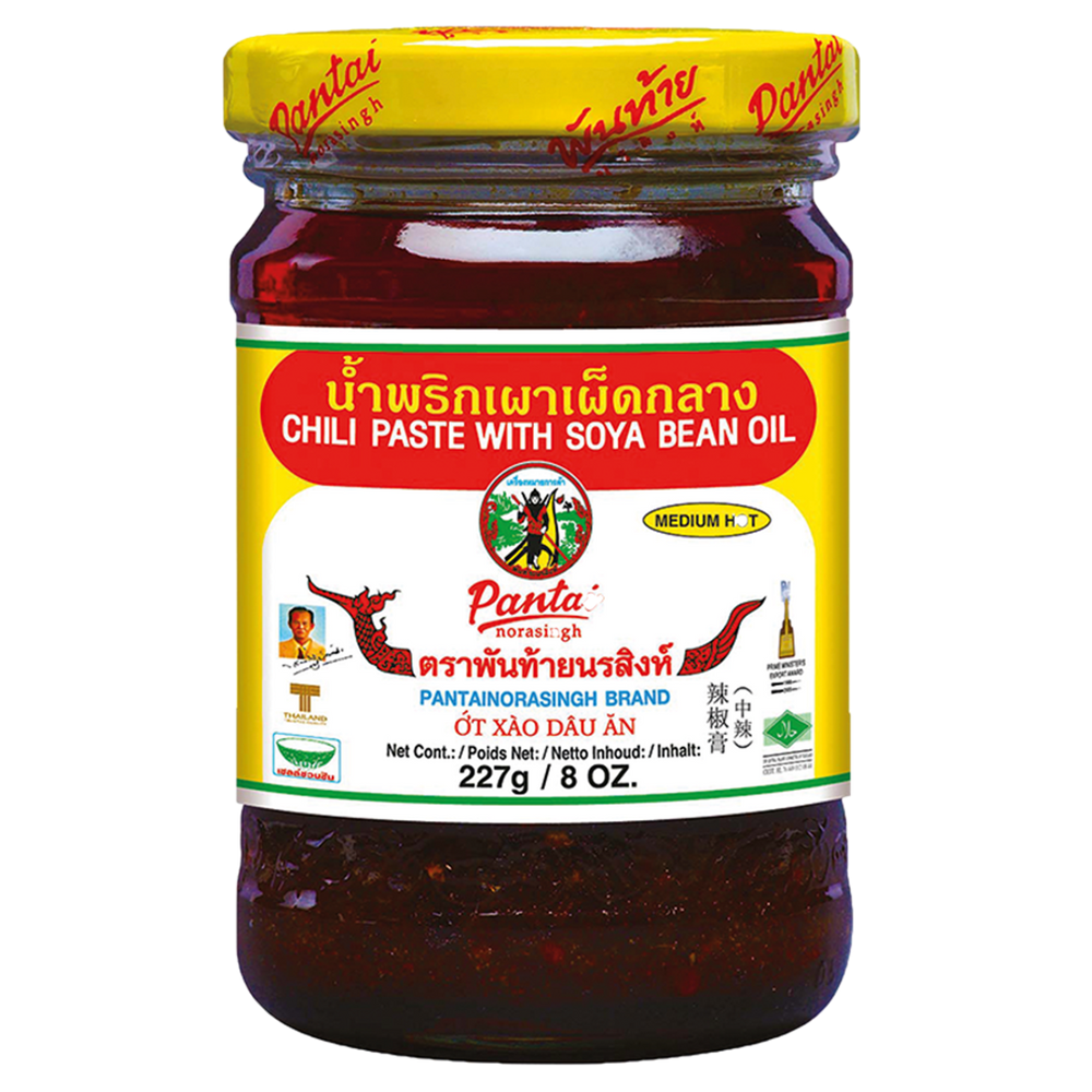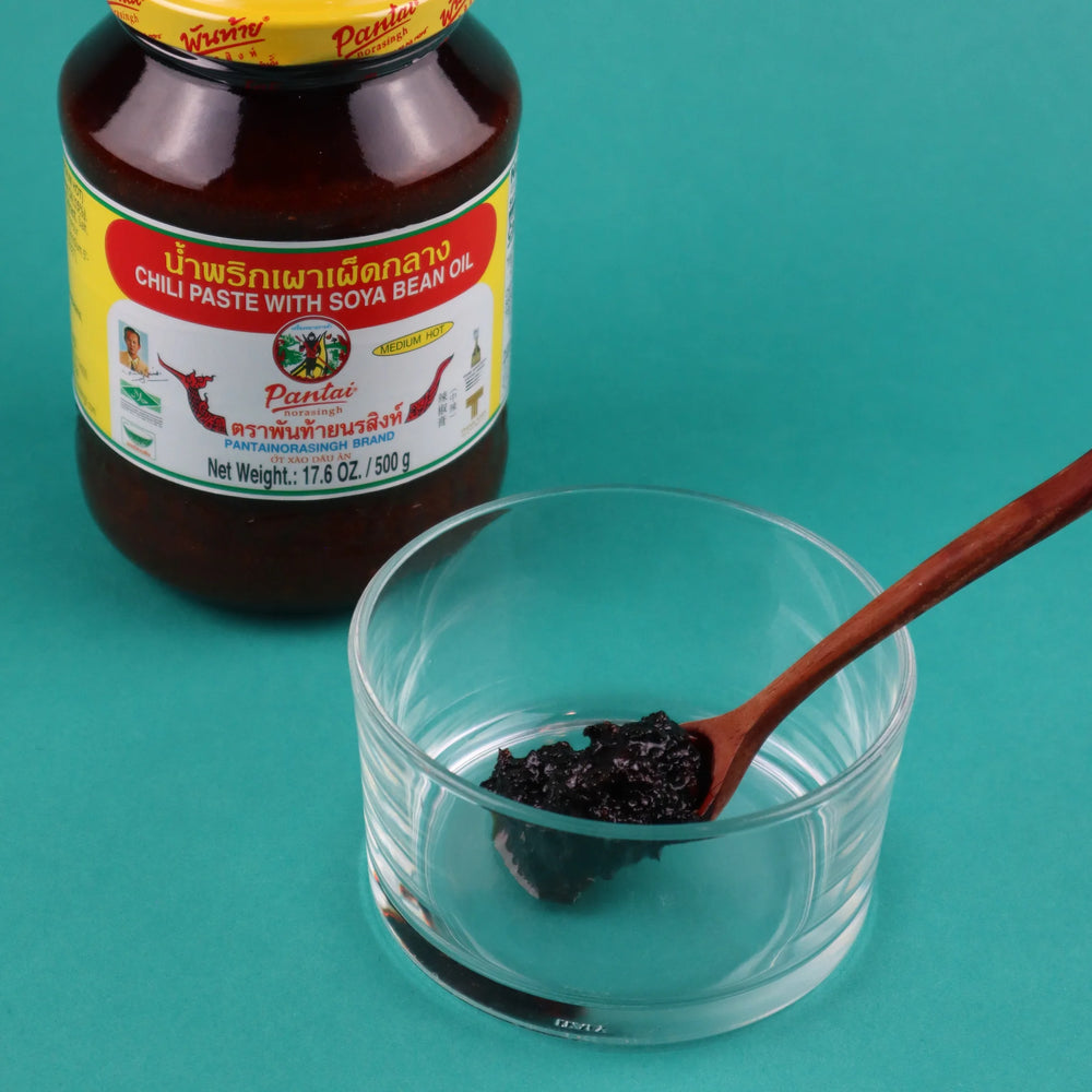 Pantai čili pasta su sojų pupelių aliejumi yra šiek tiek aštri, saldi, rūgšti ir sūri pasta, kurią galima naudoti bet kokiam Azijos įkvėptam patiekalui. Paprastai ji gaminama iš džiovintų čili, česnako, cukraus, krevečių pastos ir žuvies padažo. Tai universalus tailandiečių podėlio produktas – tiršta, pikantiška, saldi ir šiek tiek aštri pasta.