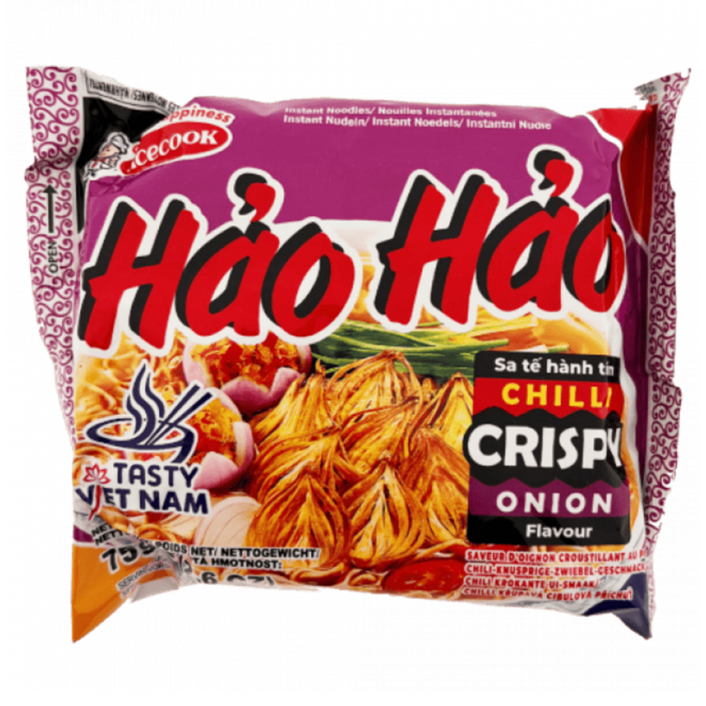 Greitai paruošiami makaronai su aitriosiomis paprikomis ir traškiais svogūnais Hao Hao ACECOOK, 75 g yra užsakytas ir bus išsiųstas, kai tik bus sandėlyje.