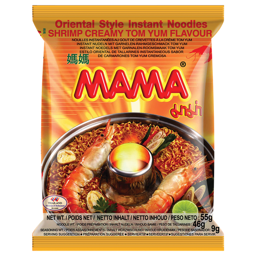 Norisi tikrų Tailando skonių? Mama kreminiai Tom Yum makaronai. Sodrus krevečių skonis, lengvas karis ir kvapni citrinžolė kiekviename kąsnyje sukuria tobulą aštraus, rūgštaus ir pikantiško skonio balansą.