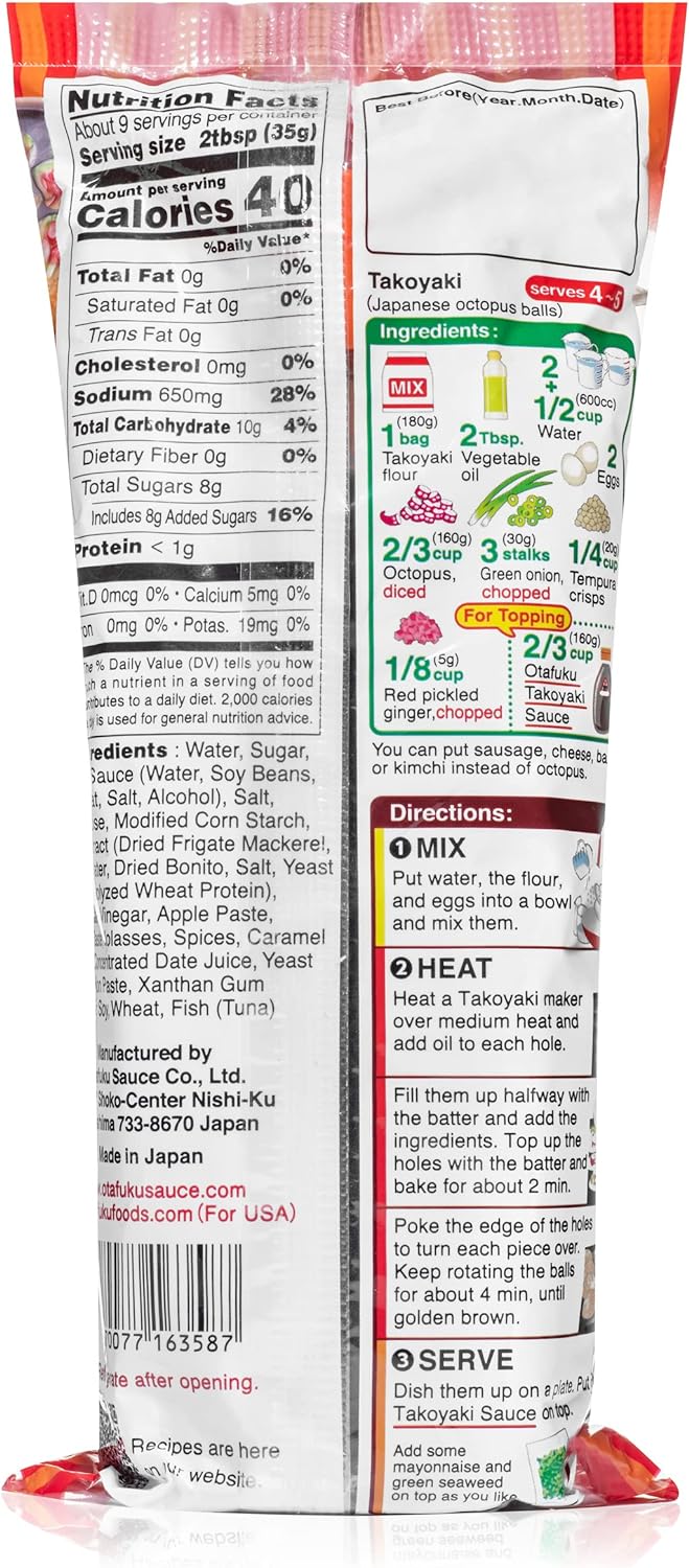 Šis žinomas padažas naudojamas kaip įvairių rūšių Azijos maisto užpilas ir prieskonis. Svarbiausias japoniško gatvės maisto - mėgstamų Takoyaki rutuliukų - užpilas. Suteikite savo skonio receptoriams nepakartojamai malonią patirtį, kuria norėsite mėgautis vėl ir vėl. Specialus receptas, naudojamas brangiuose restoranuose – atpažinsite šį unikalų Takoyaki skonį, naudojamą geriausiuose japonų restoranuose. Saldus ir sūrus – puikiai tinka takoyaki, okonomiyaki ir yakisoba patiekalams.