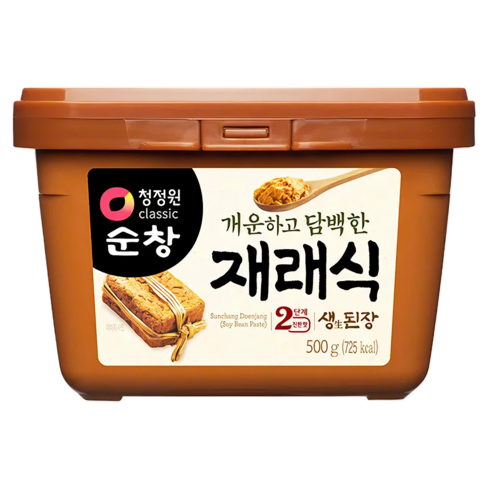 Korėjos fermentuota sojos pasta (doenjang) iš patikimo „Chung Jung One“ prekės ženklo, tradiciškai brandinta, kad įgautų gilų, sodrų umami skonį su ryškiu, žemišku ir šiek tiek sūriu poskoniu, kuris yra korėjietiškos virtuvės širdis. Pagaminta iš 100 % sojos pupelių ir natūralios druskos natūralaus fermentavimo būdu, ši aukščiausios kokybės doenjang suteikia sudėtingą pikantišką gilumą, kuris gerokai pranoksta įprastą miso, todėl ji yra būtina jjigae (troškiniams), sriuboms, marinatams, padažams ir daržovių garnyrams. Šis 500 g indelis, kuris yra pagrindinis dalykas korėjiečių namų virtuvėse ir restoranuose, siūlo puikią vertę ir ilgalaikį šviežumą.