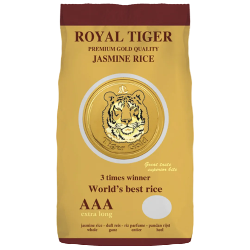Tai Tailando ryžių „karalius“. „Royal Tiger Jasmine Rice Premium Gold“ yra aukščiausios „Hom Mali“ rūšies jazminų ryžiai, vertinami dėl savo natūralaus aromato, primenančio pandano lapus, sniego baltumo ir minkštos, šiek tiek lipnios tekstūros, kuri idealiai tinka prie azijietiškų padažų.