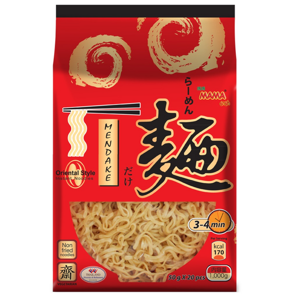 Pavadintas pagal japonišką žodį „Mendake“ (麺だけ) , kuris pažodžiui reiškia „tik makaronai“, šis produktas atitinka savo pavadinimą, nes yra iš grynų, aukštos kokybės kviečių be nereikalingų priedų.