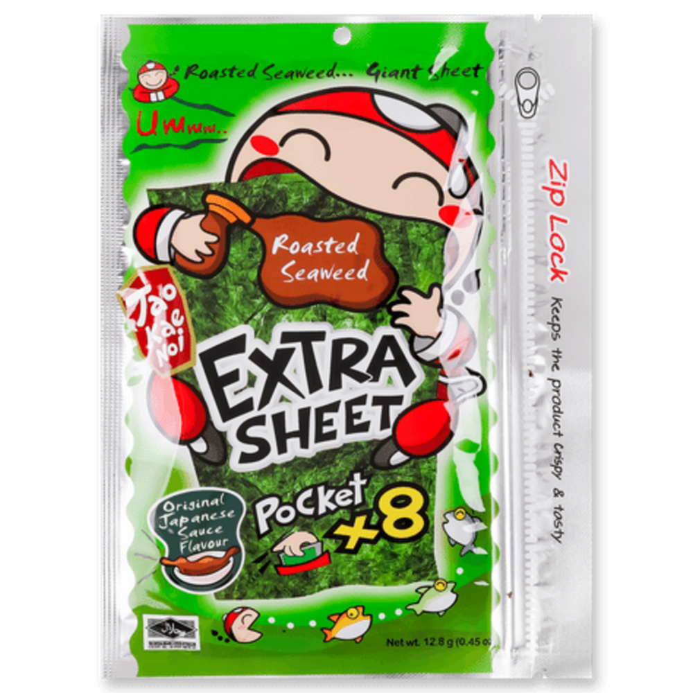 Pasimėgaukit puikiu saldumo ir sūrumo balansu su „Taokaenoi“ jūros dumblių užkandžiu. Šie 8 aukščiausios kokybės skrudinti lakštai yra lengvai pagardinti firminiu japoniško stiliaus glaistu, suteikiančiu sodrų „umami“ skonį. Jūros dumbliai yra natūralus vitaminų ir jodo šaltinis, todėl ši 12,8 g pakuotė yra išmanus pasirinkimas besirūpinantiems sveikata. Mėgaukitės jais tiesiai iš pakuotės arba sutrupinkite ant salotų, kad suteiktumėte patiekalui papildomo traškumo.