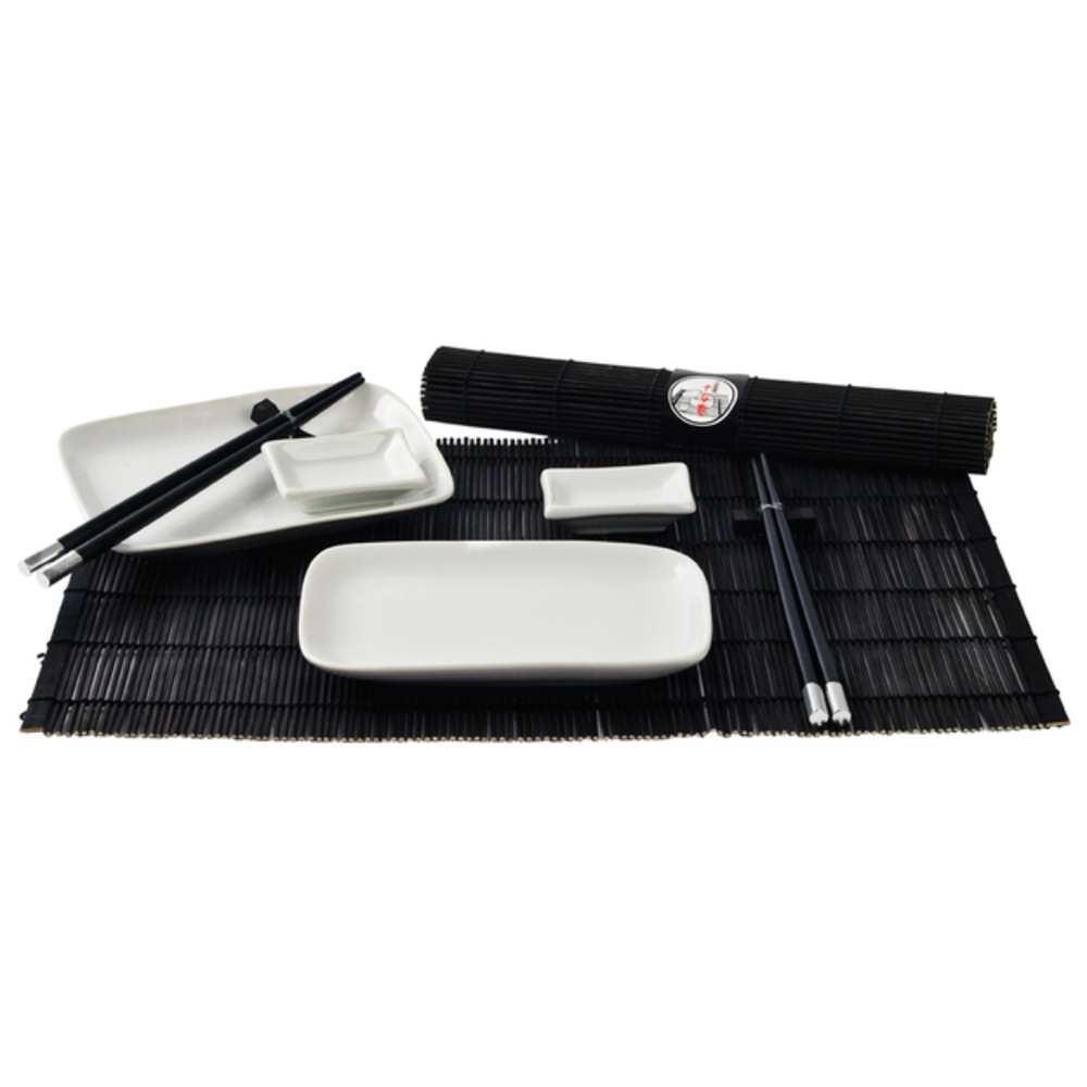 Pilnas 8 dalių japoniškų suši patiekalų rinkinys 2 asmenims, kurį sudaro 2 keraminės suši lėkštės, 2 padažinės, 2 poros natūralaus bambuko valgomųjų lazdelių ir 2 atramos lazdelėms - visa tai yra autentiško minimalistinio japoniško dizaino. Šis elegantiškas dovanų dėžutės įpakavimas pagamintas iš aukščiausios kokybės keramikos, tinkamos plauti indaplovėje, klasikinės matinės juodos spalvos, todėl puikiai tinka suši vakarams, pasimatymams ar dovanoti azijietiško maisto mėgėjams. Per kelias sekundes bet kokį maistą namuose paverskite autentišku japonišku pokyliu. Su šiuo GOLDEN TURTLE suši pietų rinkiniu ant savo stalo galėsite pateikti restorano stiliaus suši.