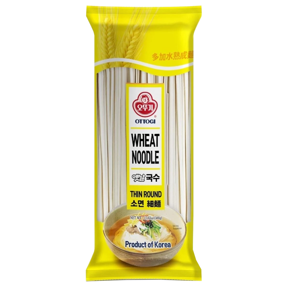 Korean-style thin wheat noodles (somen) crafted from high-quality wheat flour and salt for delicate, elastic texture, soft chewiness and neutral flavour that absorbs broths and sauces beautifully. These fine, round noodles cook quickly in 3–5 minutes and deliver authentic Asian noodle satisfaction with a light, springy bite perfect for traditional cold somen (hiyashi somen) with dipping tsuyu, hot soups like janchi guksu, stir-fries, salads, or refreshing Korean naengmyeon variations. Versatile and reliable for everyday Asian cooking, they’re a pantry staple from Korea’s trusted Ottogi brand loved for consistent quality and versatility. Create light, flavourful noodle dishes effortlessly anytime!