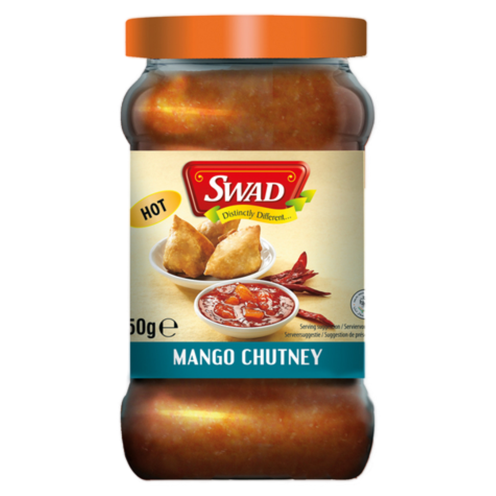 Indian hot mango chutney from the trusted SWAD brand, made with generous chunks of mango simmered with sugar, vinegar, red chilli, ginger, garlic, and spices for a perfect balance of sweet, tangy, and fiery heat. This spicy-sweet chutney delivers a bold chilli kick with fruity mango flavour and glossy texture, making it far more exciting than regular mango chutney. Ideal as a dip for papadums and samosas, accompaniment to curries, spread on sandwiches, glaze for grilled meats, or side for cheese and snacks.