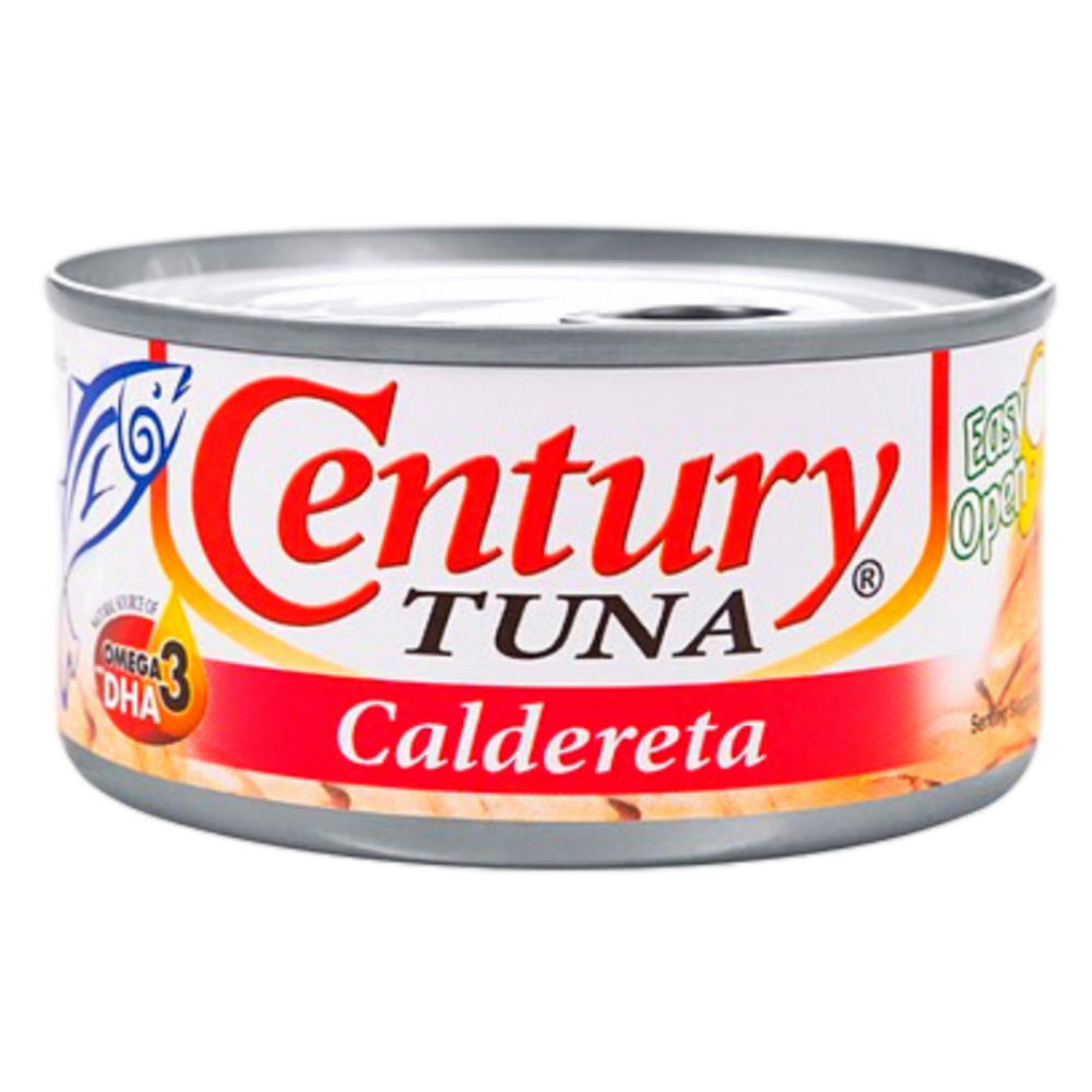 Philippines’ beloved canned tuna flakes infused with authentic Filipino caldereta sauce, featuring tender skipjack tuna in a rich, tangy tomato base with potatoes, carrots, green peas, bell peppers, garlic, onion, spices and a hint of sweetness for that classic sweet-spicy-savory flavor ready to eat straight from the easy-open tin. This convenient, omega-3-rich, high-protein option captures the comforting taste of traditional Pinoy caldereta stew without cooking, delivering flaky texture and vegetable-infused umami perfect for quick meals over rice, pancit toppings, sandwiches, pasta or salads. A pantry staple and bestseller loved by generations for its effortless Filipino home-cooked vibe with no preservatives. Bring genuine Century caldereta tuna magic to your table anytime!